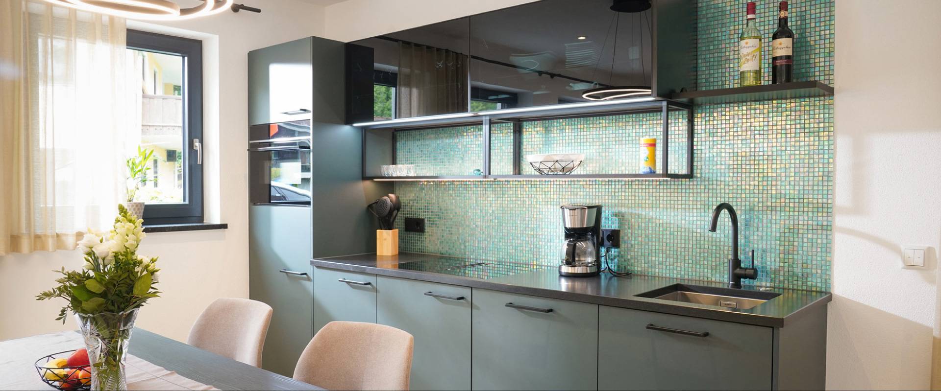 Voll ausgestattete Küche mit Spül- und