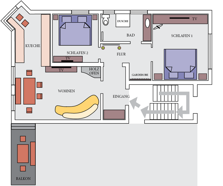 Auf dem eigenen Balkon haben Sie nach einem ereignisreichen Bergwander-, Ski- oder Kulturtag die Möglichkeit zu entspannen und den herrlichen Blick zu genießen.